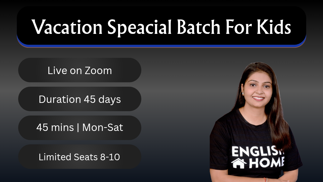 Kids Vacation Special Batch – Level 1 is specially designed for children during school holidays and vacations, when they have more free time to focus on learning and improving their English speaking skills. This live English speaking program on Zoom helps children learn in a fun, interactive, and confidence-building environment.